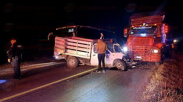 Tangancícuaro, Michoacán (MiMorelia.com).- Un hombre quedó prensado dentro de la camioneta que tripulaba, tras protagonizar un choque de frente contra un camión de carga sobre la carretera Morelia – Zamora.