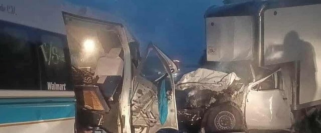Gabriel Zamora, Michoacán (MiMorelia.com).- La mañana de este sábado se registró un brutal choque de frente entre una combi del Servicio Público y una camioneta de carga, en la autopista Siglo XXi, con saldo preliminar de 4 personas sin vida y al menos 5 lesionadas, de acuerdo con fuentes de rescate.