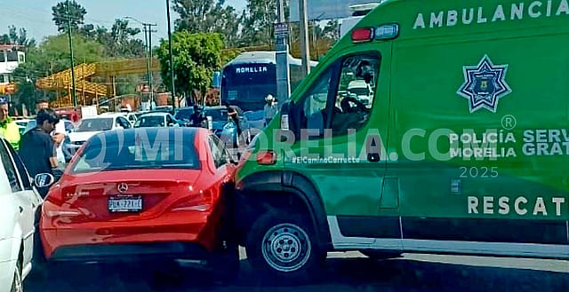 Morelia, Michoacán (MiMorelia.com).- Un auto particular y una ambulancia de Rescate protagonizaron un choque sobre la avenida Madero Oriente de Morelia; por fortuna no hubo lesionados, trascendió en la labor noticiosa.