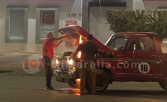 Los ocupantes de una camioneta pickup color guinda, de modelo antiguo, se percataron que salía humo del cofre y se detuvieron cerca del Ooapas, y al revisar descubrieron las llamas, siendo auxiliados por algunas personas.