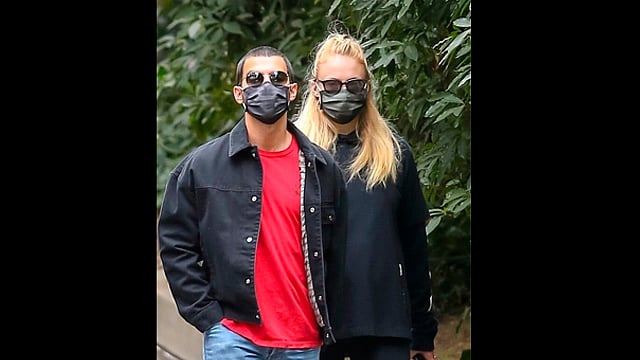 Las imágenes muestran a Joe y a Sophie caminando de la mano. Ambos portando mascarillas para protegerse del coronavirus, pero lo que inmediatamente llamó la atención fue el vientre de ella, pues a pesar de la ropa holgada que usaba, se le notó el embarazo.