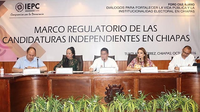Tuxtla Gutiérrez, Chiapas (MiMorelia.com).- En el marco del foro ciudadano "Diálogos para fortalecer la vida pública y la institucionalidad electoral en Chiapas", organizado por Instituto de Elecciones y Participación Ciudadana de Chiapas (IEPC), el consejero presidente del Instituto Electoral de Michoacán (IEM), Ramón Hernández Reyes, participó con la ponencia "Experiencias de procesos con candidaturas independientes".