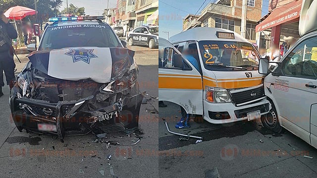 Morelia, Michoacán (MiMorelia.com).- Una patrulla de la Policía de Morelia y una combi de la Ruta Amarilla 2 protagonizaron un choque en el que también resultó afectada una camioneta particular, trascendió en la labor noticiosa.