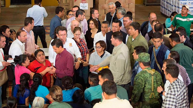 Peña Nieto estuvo acompañado de los titulares de Gobernación, Miguel Ángel Osorio Chong; de Marina Armada de México, Vidal Francisco Soberón; de Desarrollo Social, José Antonio Meade; y personal de la Secretaría de Desarrollo Agrario, Territorial y Urbano (Sedatu), además del gobernador de la entidad, Rafael Moreno Valle.