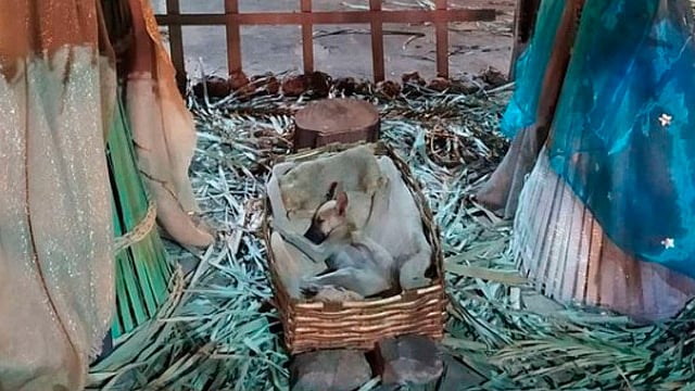 "Cuando fuimos a ver la cuna nos encontramos con un cachorro durmiendo en el pesebre. Una imagen muy bonita, sobre todo para los cristianos", añadió.