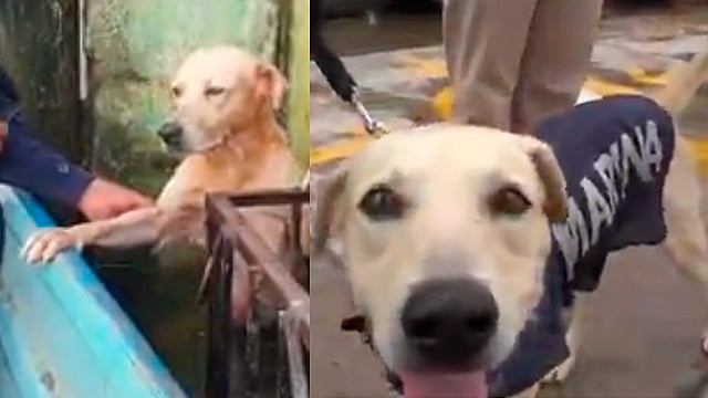 Morelia, Michoacán (MiMorelia.com).- El perro rescatado en las inundaciones de Tabasco fue adoptado por la Secretaría de Marina (Semar) y ahora le buscan un nombre.