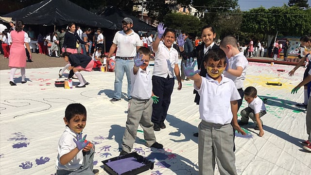 Coalcomán, Michoacán (Boletín).- Más de mil niñas y niños de este municipio participaron en la pinta del telón "La paz está en ti", que incluyó actividades como el Tianguis de la Ciencia, cuenta cuentos, juegos didácticos, primeros auxilios, Burbuciencia y Ciudad Vial, entre otros.