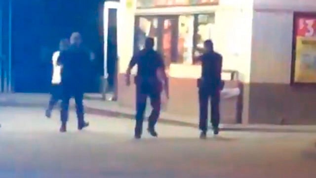 En el vídeo se mostró el momento en el que elementos siguen al sujeto por una avenida mientras le apuntan con sus armas. El individuo identificado como Trayford Pellerin de 31 años de edad, hace caso omiso y se dispone a entrar a una tienda. En ese momento los elementos disparan contra Pellerin y lo dejan herido.