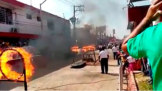 Cunduacán, Tabasco (Rasainforma.com).- Un policía de la Secretaría de Seguridad Pública de Cunduacán, sufrió quemaduras en parte del cuerpo luego de que una acrobacia salió mal.