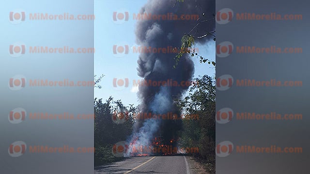 Aquila, Michoacán (MiMorelia/RED 113).- Un vehículo fue incendiado en la carretera a