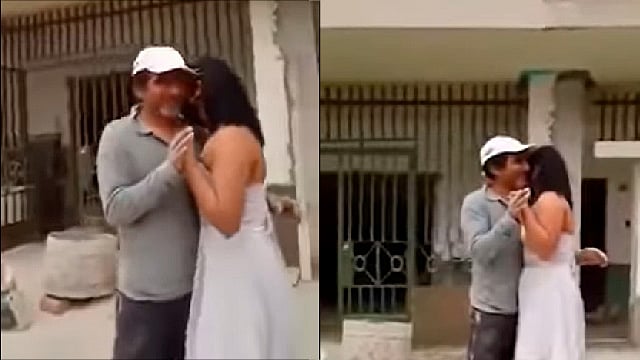 En las imágenes se puede ver el momento exacto en que la joven que llega con su padre, quien está en su área de trabajo como albañil para pedirle que baile con ella una pieza de vals con la canción "No crezcas más". La increíble escena se registró en La Libertad, Perú.