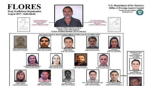 "Flores Hernández ha operado exitosamente durante décadas debido a su larga relación con otros cárteles de la droga y su uso de testaferros para enmascarar sus ganancias procedentes de la venta de drogas", dijo en un comunicado el director de la Oficina del Tesoro para el Control de Activos Extranjeros (OFAC), John Smith.