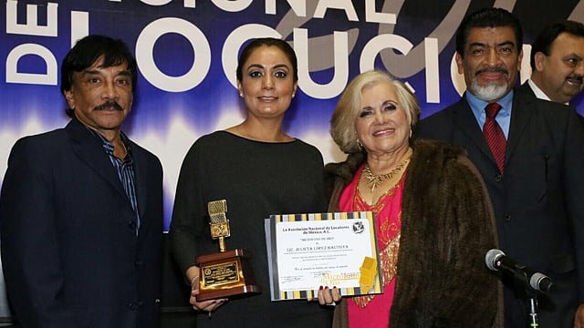 En las instalaciones de la antigua sede del Senado de la República y acompañada de la presidenta de la Asociación Nacional de Locutores de México, Rosalía Buaún Sánchez, Julieta López consideró que los locutores del país construyen el relato vivo de la realidad y devenir.
