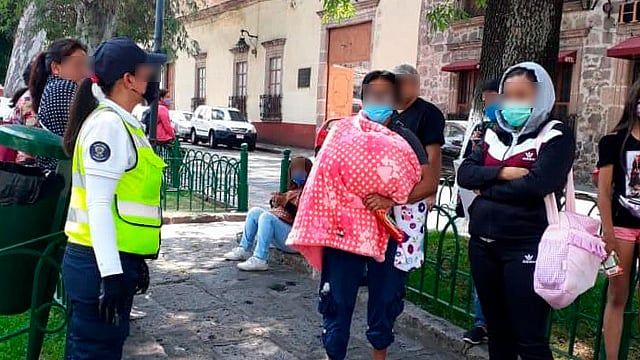 En los cinco filtros instalados en puntos de más concentración en Morelia, los uniformados pertenecientes a la dependencia de seguridad han acompañado a un total de 90 familias de la ciudad que no justificaron su estancia en la vía pública, sino que realizarían otra actividad no esencial, por ello, se les pidió regresar a sus casas o de lo contrario podrían ser acreedores a una de las sanciones señaladas en el decreto.