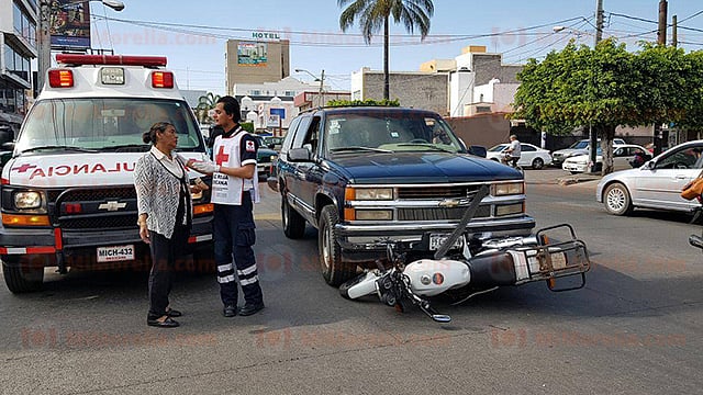 Zamora, Michoacán (MiMorelia.com/RED 113).- La tarde de este viernes un empleado de Domino's Pizza resultó herido al ser embestido por una camioneta, cuando el afectado viajaba a bordo de una motocicleta en las inmediaciones de la colonia Fovissste de esta ciudad de Zamora.