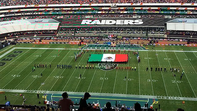 Ciudad de Mexico (Rasainforma.com).- Luego que la emoción de tener un partido de la NFL en el Estadio Azteca en donde disputaron los Patriotas contra los Raiders, sin embargo, a medio tiempo salieron los héroes nacionales al terreno del juego, mientras descansaban ambos equipos.