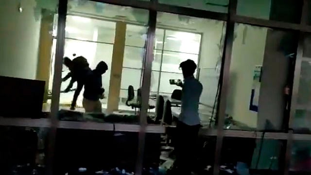 Videos del motín muestran ventanas rotas y autos volcados. También fueron destruidas cámaras de videovigilancia, lámparas y ventiladores.