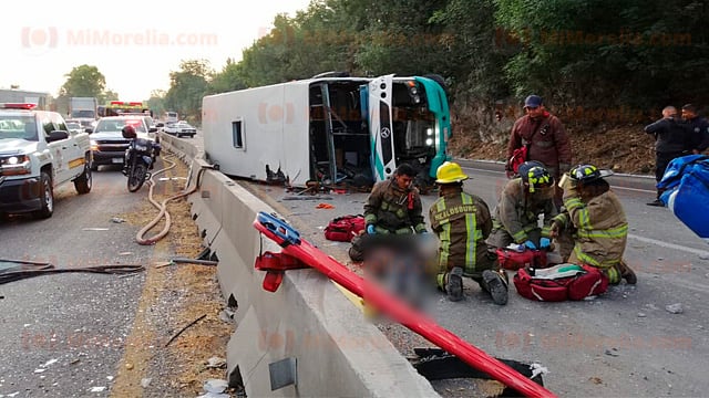 El vehículo siniestrado es de la ruta Acuitzio del Canje-Santiago Undameo, número económico 69 y marca Mercedes Benz se dirigía a Morelia. Los Bomberos Morelia participaron en las maniobras de auxilio, así como otras corporaciones de rescate. De las diligencias de ley se encargó el personal de la Fiscalía General del Estado.