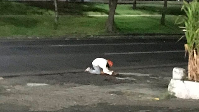A través de redes sociales se dio a conocer una imagen en la que se observa a un hombre arrodillado en la calle mientras toca a un perrito que fuera su amigo y muriera atropellado en Avenida Camelinas el pasado lunes en la capital michoacana.