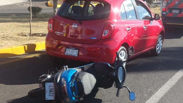 Lo hechos ocurrieron alrededor de las 16:19 horas enfrente de la Plaza la Huerta, cuando el conductor del vehículo Volkswagen involucrado es tipo Hatchback, color rojo y placas PFM706C, se impactó con una motocicleta.