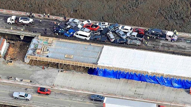 La sargento Michelle Anaya, señaló que el accidente se debió a la intensa niebla que había y al hielo, lo que desencadenó el "desastre en cadena". Hasta el lugar llegaron los servicios de emergencia y auxilio, los lesionados fueron llevados a distintos hospitales.
