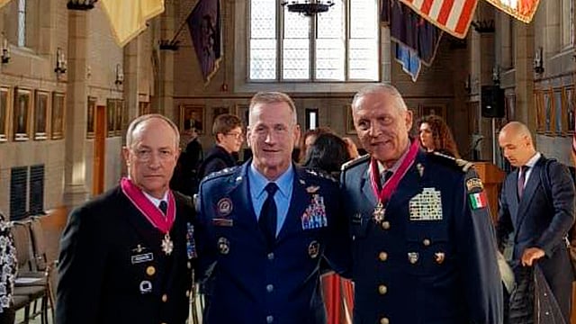Estados Unidos (MiMorelia.com/Redacción).- Este viernes el general Salvador Cienfuegos Zepeda, Secretario de la Defensa Nacional y el almirante Vidal Francisco Soberón Sanz, Secretario de Marina, fueron condecorados con la "Legión al Mérito" en el Grado de Comandante, distinción otorgada con la autorización del Departamento de Defensa y del presidente de los Estados Unidos de América.