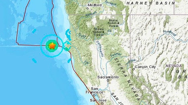 El epicentro se localizó a 86 kilómetros al oeste de la comunidad de Petrolia y tuvo dos metros de profundidad.