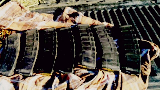Al inspeccionar el lugar los uniformados encontraron una camioneta marca GMC Sierra Denali, negra, con placas del estado de Jalisco y siete cargadores para fusiles AR-15, abastecidos cada uno con 30 cartuchos útiles.