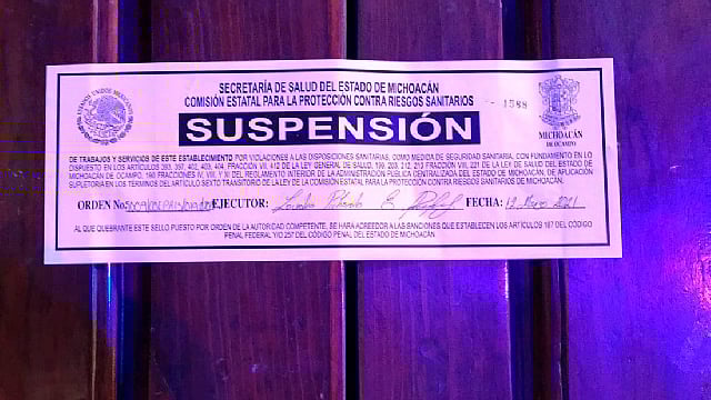 Morelia, Michoacán (MiMorelia.com).- Durante operativo sanitario en Morelia, la Secretaría de Salud de Michoacán (SSM), a través de los Guardianes de la Salud suspendió seis establecimientos por no cumplir las medidas preventivas por Covid-19.