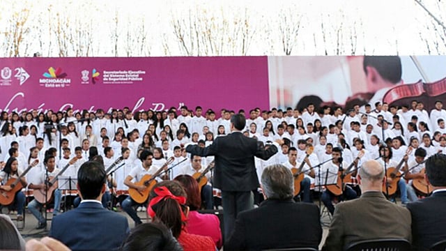 Morelia, Michoacán (MiMorelia.com).- Con el objetivo de fomentar una cultura de paz en la niñez y en la juventud michoacana, este jueves el Sistema Estatal de Seguridad Pública en coordinación con la Universidad Latina de América, llevaron a cabo el concierto denominado "Michoacán canta por la paz", a cargo del Coro Monumental y la Orquesta Juvenil de Prevención del Delito.