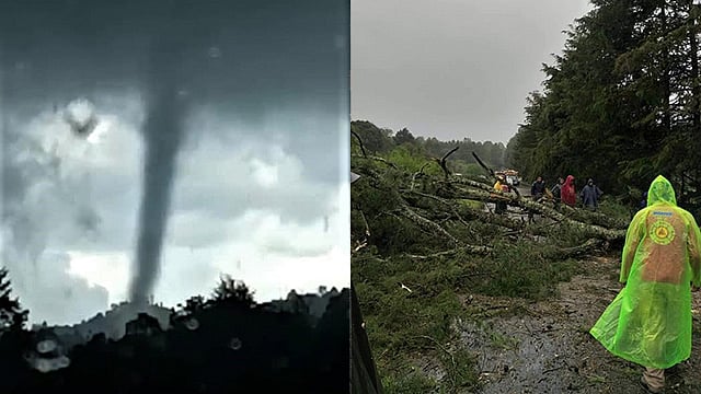 Charapan, Michoacán (MiMorelia.com).- Durante las últimas horas del pasado viernes, en Charapan, Michoacán, azotaron fuertes lluvias acompañadas de granizo y ráfagas de viento, que provocaron que se formara una "culebra de agua" o tornado, lo que ocasionó algunos daños materiales y caídas de árboles en la región.