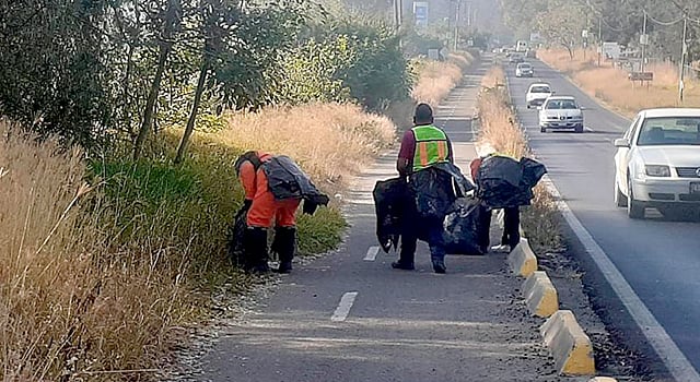 Se trata de la vialidad que va del Country Club La Huerta rumbo a la Tenencia Morelos, donde los trabajadores sindicalizados, adscritos a la dirección de Residuos Sólidos, realizaron labores de papeleo y raspado de la Ciclopista, informó el líder del SLyT, Marco Antonio Solórzano Orozco.
