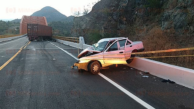 Arteaga, Michoacán (MiMorelia.com).- Un muerto fue el saldo de un choque de frente entre un automóvil y un tráiler comercial, el cual se registró en la autopista "Siglo XXI" en este municipio de Arteaga. El personal de la Fiscalía General del Estado de Michoacán (FGE) llegó al área para iniciar las diligencias pertinentes con relación al asunto.