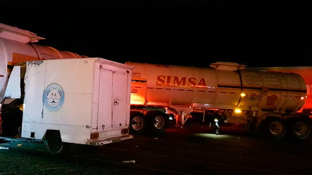 Asimismo, se apreció que el tractocamión implicado en los hechos es uno de doble remolque, con razón social Grupo Simsa. Los oficiales de la Policía Federal de la División de Seguridad Regional efectuaron el respectivo peritaje para deslindar responsabilidades, luego las unidades involucradas fueron retiradas de la escena.