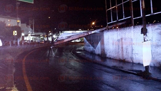 En la Avenida Camelinas, a la altura del "Arenia Casino" en la colonia Jardines del Rincón, a unos metros del crucero a "Mil Cumbres", un anuncio espectacular cayó a la cinta asfáltica, justo en el distribuidor que conecta a Camelinas con la carretera a "Mil Cumbres", mientras que en la empresa Konexo que está en la zona residencial de Tres Marías otro cristal se rompió por los estruendos y los fuertes vientos. PC y la Policía Municipal pidieron a la comunidad que cualquier emergencia la reporte a los números telefónicos 911 y 113-5000.