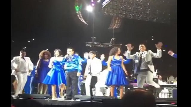 El concierto se convirtió en una auténtica fiesta en la que fue acompañado en el escenario por alrededor de 60 músicos de mariachi y orquesta, bailarines y coristas. Mientras que el tablado, le permitió al intérprete de "amor eterno" recorrerlo en 360 grados.