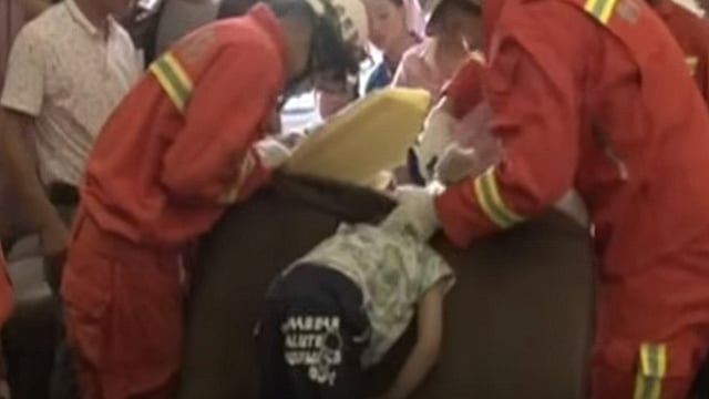 China (MiMorelia.com/ Dani Morales).- Un menor de cuatro años de edad provocó la movilizacion de los Bomberos en la provincia de Guizhou, al suroeste de China, al quedar su cabeza atorada en un sillón.