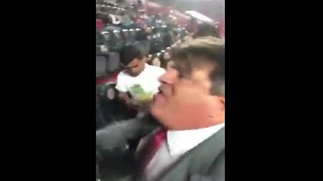 También se alcanza a escuchar en el video difundido en YouTube, insultos al comentarista de TV Azteca, Christian Martinoli, a quien precisamente Herrera golpeó en el Aeropuerto de Filadelfia en 2015, que le significó a final de cuentas su salida como director técnico de la selección mexicana de futbol.