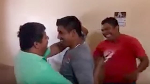 En el video se observa el momento que esta persona le pide un beso a otro hombre mucho más joven que él, esto ante la burla de sus compañeros y en medio de varios celulares que los graban.