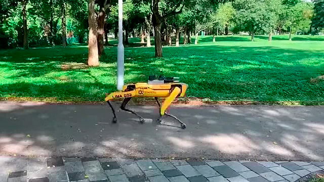 El perro-robot patrulla las calles del parque Bishan-Ang Mo Kio y es parte de una prueba de dos semanas, es decir finaliza el próximo 22 de mayo, y es un esfuerzo conjunto entre la Junta de Parques Nacionales y el Grupo de Gobierno Digital y Nación Inteligente.