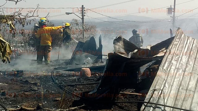 Morelia, Michoacán (MiMorelia.com/RED 113).- Un incendio destruyó una casa de madera en la colonia Hombres Ilustres de Michoacán, ubicada a un costado del camino Morelia-La Concepción, siniestro que sólo dejó daños materiales y fue eliminado por los bomberos de Protección Civil Estatal (PCE).