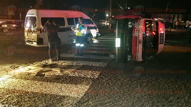 Morelia, Michoacán (MiMorelia.com/RED 113).- Dos combis del servicio público urbano protagonizaron un choque y una de ellas volcó, percance en el que hubo únicamente daños materiales, comentaron las autoridades.