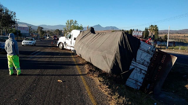 El accidente sucedió la mañana de este miércoles a la altura de la comunidad de Uruapilla, municipio de Morelia. La unidad siniestrada es al parecer de la marca Kenworth, color blanco.