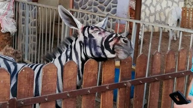 Egipto (Rasainforma.com).- Un zoológico en Egipto decidió ingeniárselas y pinto rayas a burros para hacerlos pasar por cebras, comoel cuento Rufina la Burra.