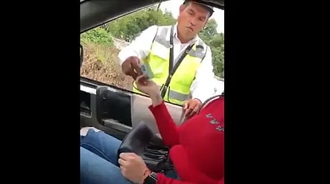 Michoacán (MiMorelia.com).- En redes sociales circula un video en el que se observa a un presunto elemento de Tránsito y Movilidad que recibe una mordida de una automovilista, según video que llegó a esta redacción.