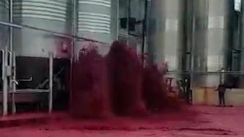 El video rápidamente se volvió viral en Twitter y los usuarios no tardaron en lamentar que miles de litros de vino se desperdiciaran. El clip ya cuenta con más de mil retuits.