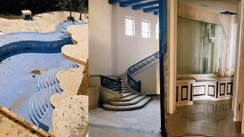 A primera vista la casa tiene manchas de humedad, además de suciedad causada por el abandono, por ejemplo, los jóvenes entraron a una cava de vinos que estaba totalmente dañada, luego ingresaron a la planta baja donde a pesar de que la sala conserva los sillones y luce aparentemente limpia, el piso y algunas ventanas están destruidas.