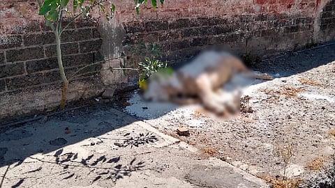 A través de redes sociales difundieron las imágenes del animal que yacía al borde de una barda, tirado y cubierto con cal; vecinos reportaron que no saben quién abandonó el cuerpo del león en dicho lugar.
