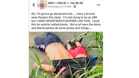 Por ejemplo, uno de los post en el grupo se burla de los migrantes fallecidos en el río Bravo hace unos días, con una imagen y un texto en inglés que dice así: "Ok, voy a preguntar. ¿Alguno de ustedes ha visto ahogados así de limpios? No estoy tratando de ser un idiota, pero NUNCA HE VISTO AHOGADOS ASÍ, podría ser otra fotografía editada. Todos hemos visto a los demócratas y a los partidos liberales hacer cosas muy enfermas".