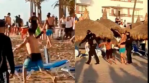 Sinaloa (MiMorelia.com).- Previo al partido del próximo sábado entre Chivas y Mazatlán FC, aficionados de los equipos se agarraron a golpes en una playa de la zona dorada, frente al hotel Ocean Palace en Mazatlán, donde hasta sillazos hubo.